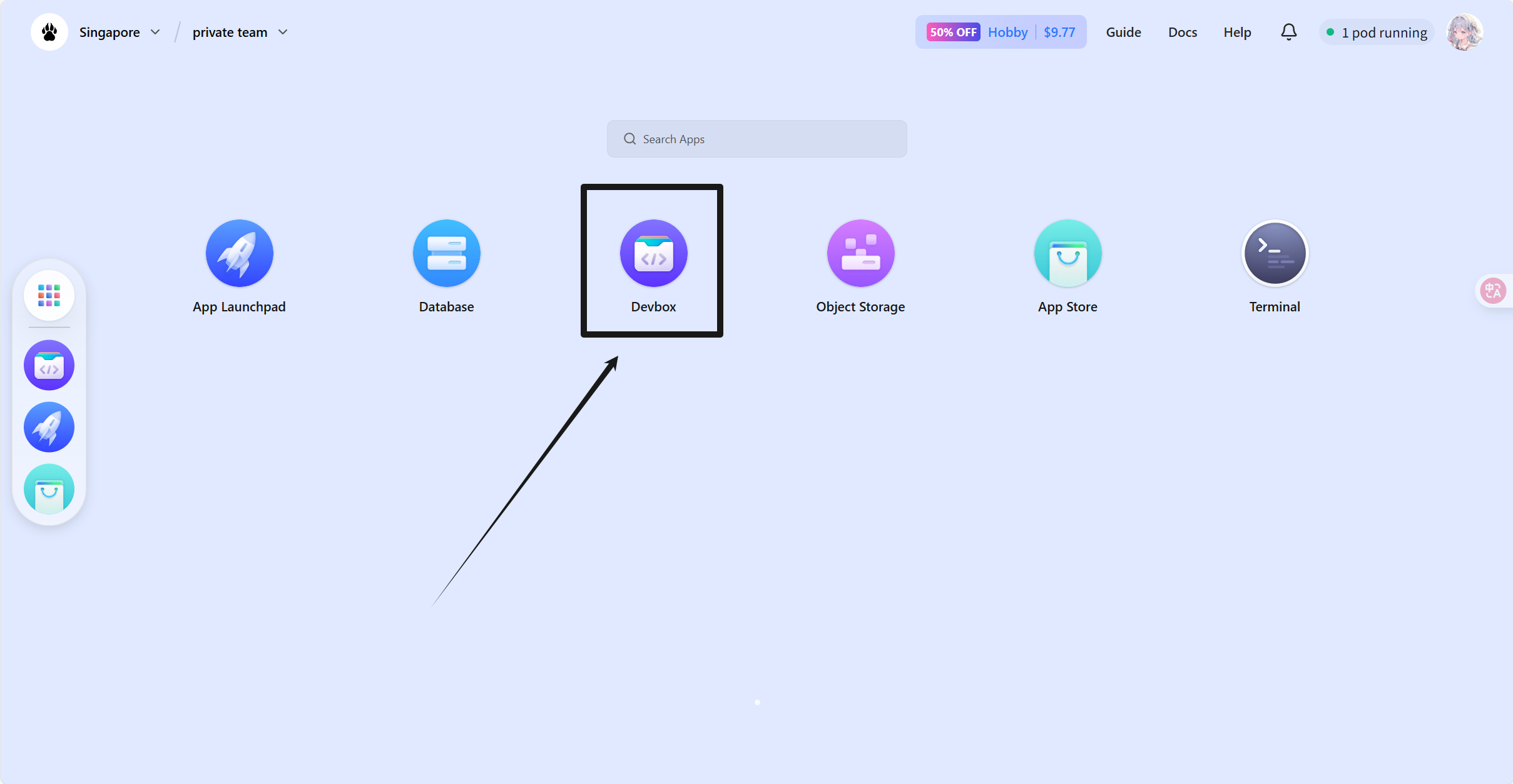回到ClawCloud Run平台,在app launchpad中创建项目或者在devbox点击部署