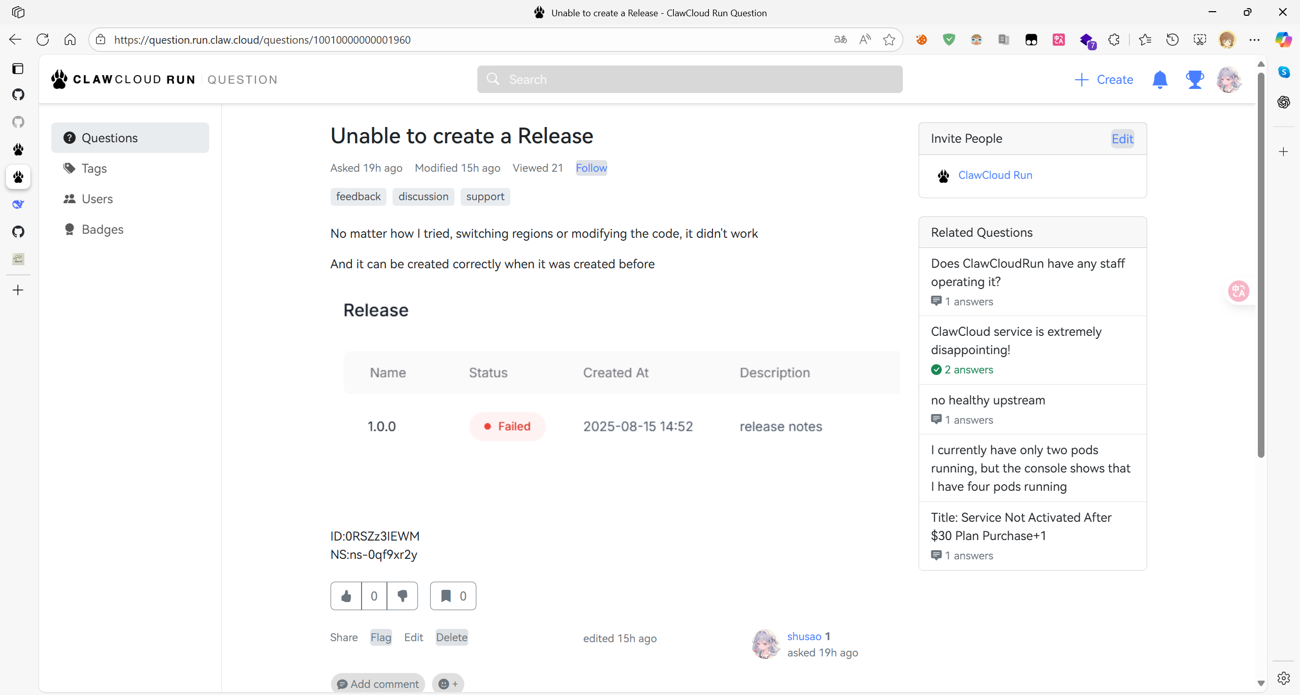 我仍不推荐使用 ClawCloud Run,官方装死,问题不予解决,功能残缺,社区纯摆设